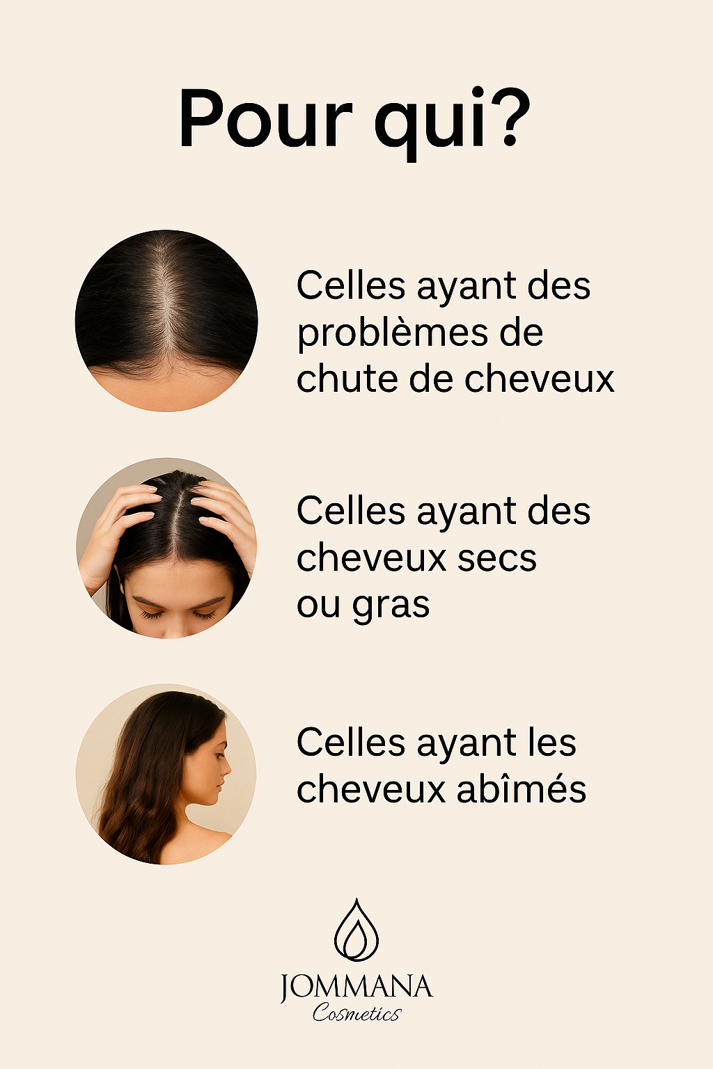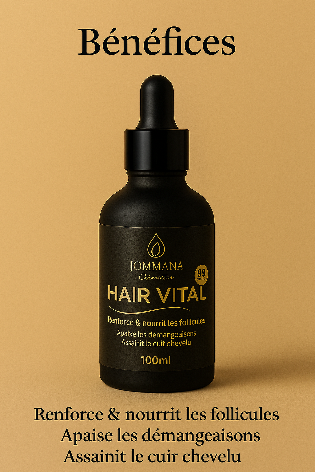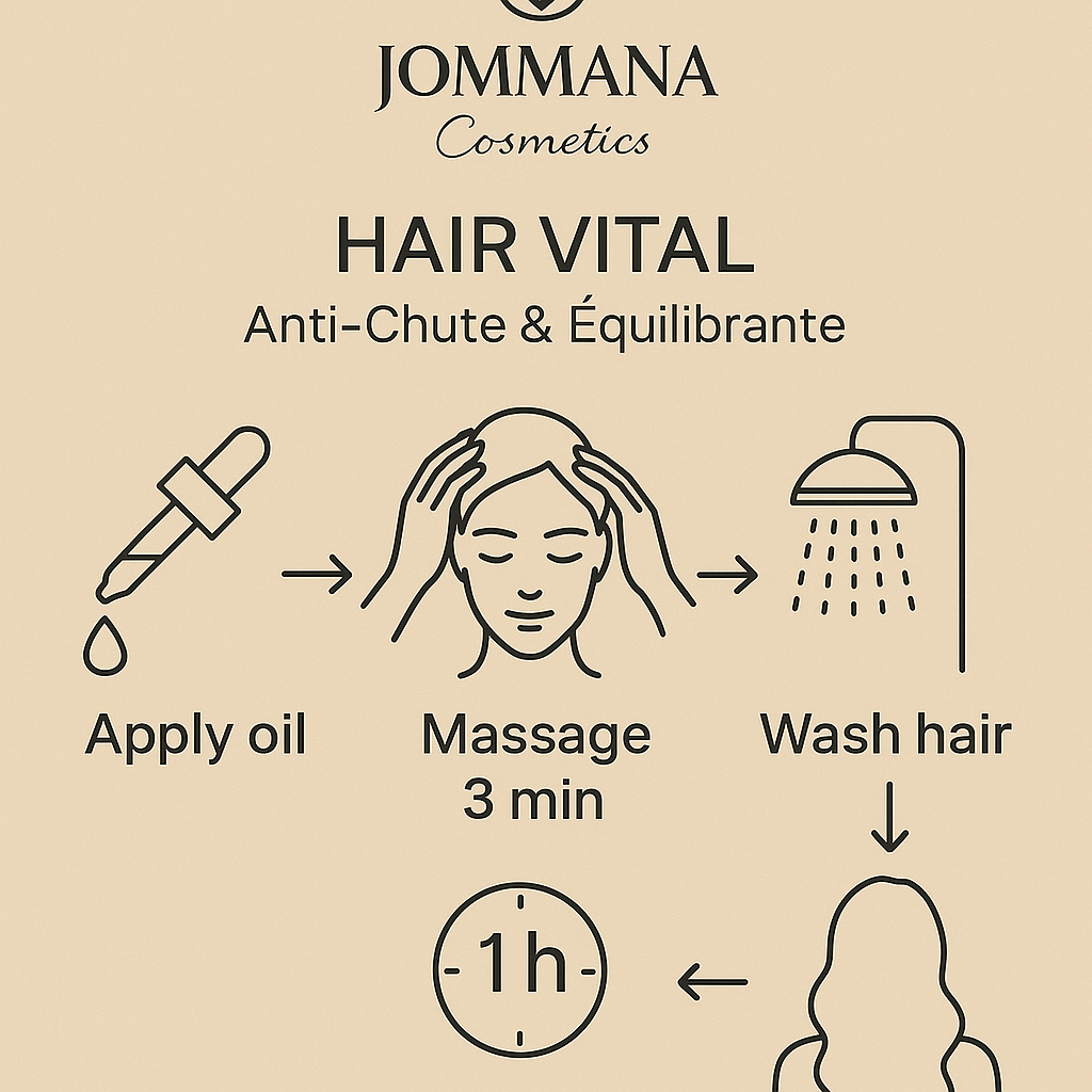 Formule exclusive Jommana Cosmetics pour des cheveux plus forts, plus denses et sans chute.